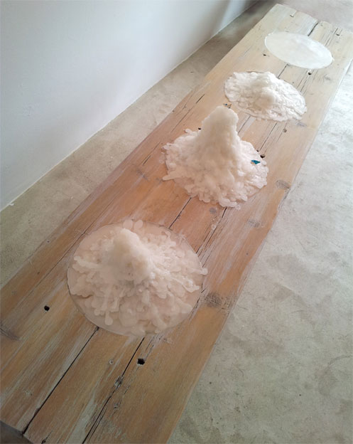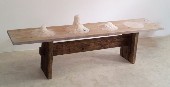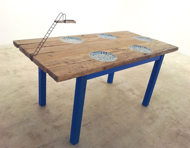 Mesas y lámpara para la exposición “La cima de lo posible”. Aba art, Palma. 9 marzo a 15 de junio de 2013.
